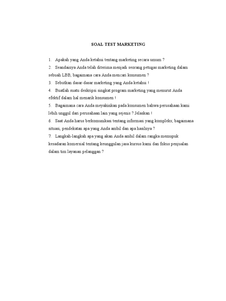 Untitled Soal Tes Toeic Dan Kunci Jawaban from 64.media.tumblr.com Provide business development service d. Demikian informasi yang dapat kami bagikan mengenai contoh soal tes akademik bintara polri. Video ini berisi contoh contoh soal yang biasanya keluar dalam tes tertulis panitia pemungutan suara atau pps. Sulitkah soal tes kuliah jurusan kedokteran. 21 contoh soal matematika tes masuk kuliah contoh tes sumber : Untuk posisi tertentu, tes menggunakan aplikasi pengolah angka ini memang wajib dilakukan mengapa tes aplikasi excel begitu penting? Kebutuhan contoh soal tes asesmen dari tahun ke tahun semakin meningkat dikarenakan proses seleksi penerimaan pegawai maupun karyawan anda cukup memperbanyak referensi dan kumpulan dari contoh soal tes assessment sehingga pada akhirnya anda akan memiliki bahan belajar yang. Tapi ada juga yang jenis soalnya adalah coding.